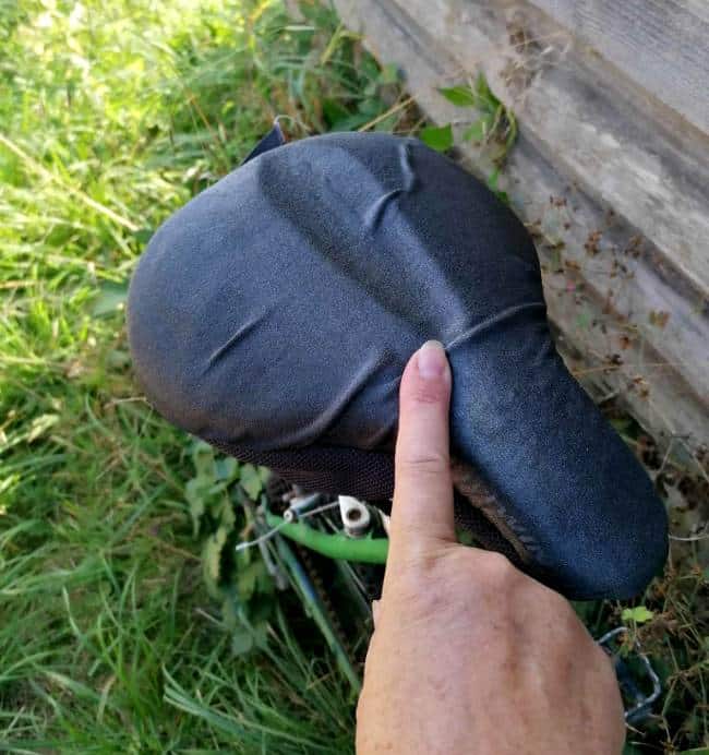 Vous pensez que la housse de selle de Guérande ne va pas convenir à votre vélo car vous avez déjà une housse sur votre selle pour rendre celle ci plus confortable? Pas de soucis, tout a été bien pensé. Soit vous n’avez rien sur votre selle et dans ce cas vous allez serrer davantage la housse de selle pour qu’elle ne bouge pas. Soit vous avez déjà une housse (style housse ave du gel) et dans ce cas vous avez juste à glisser la housse de selle de Guérande sur votre housse. Elle va s’adapter à celle en place et ensuite vous serrez le cordon et maintenez le tout en place grâce au stop cordon. Au début, certains clients venaient avec leur vélo pour vérifier que cela fonctionnait effectivement bien. Cela a été l’occasion de prendre en photo témoignage ce beau vélo ave la housse de selle gris (avec des petites poules).