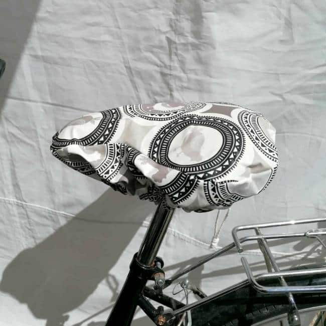 Voici donc une housse de selle de vélo en coton enduit pour protéger votre selle de vélo lorsqu’il pleut. Ou plutôt pour éviter d’avoir les fesses humides quand vous découvrez qu’il a plu et que votre vélo vous attendait sagement dehors. Pas cool, vous faites des efforts pour la planète ou pour votre corps ou tout simplement par envie et voilà comment vous êtes récompensé.