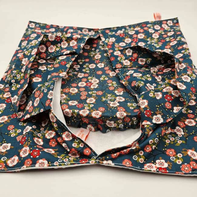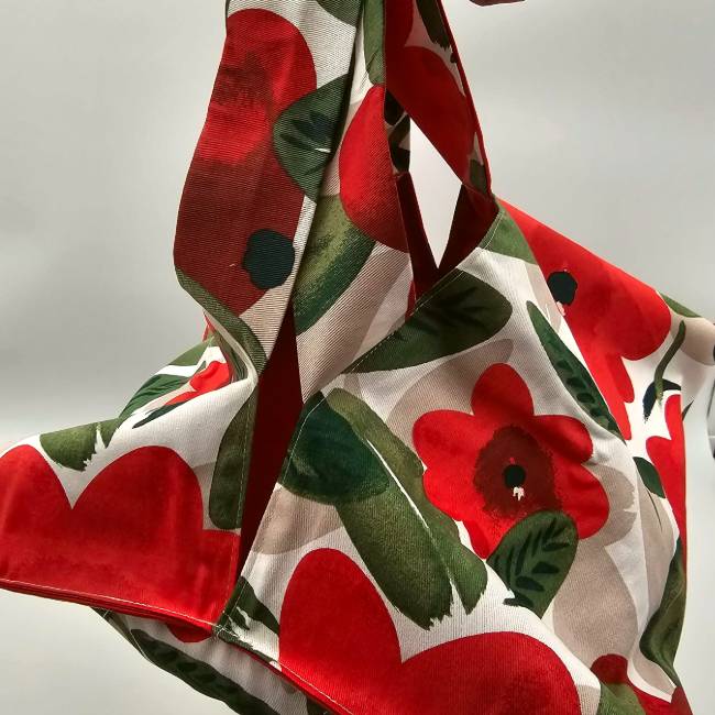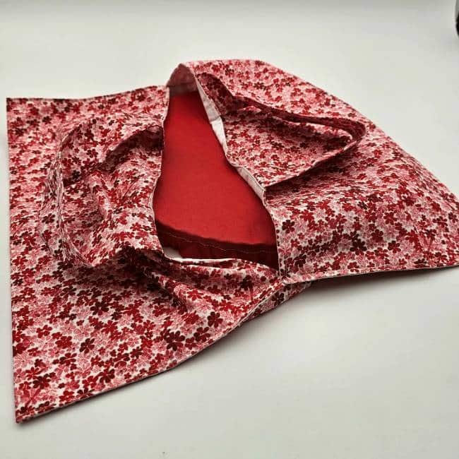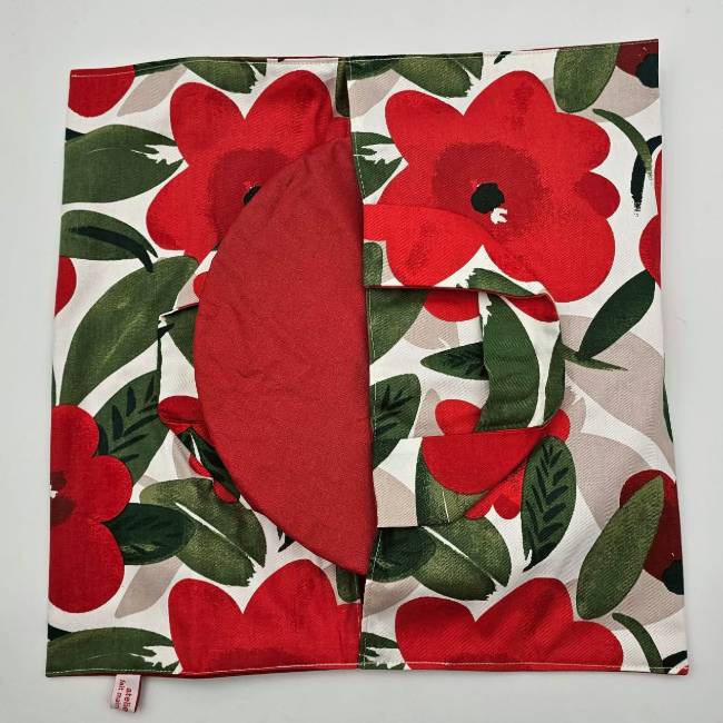 Le sac à tarte est en coton imprimé, doublé de coton uni ou imprimé, assorti. Les coutures des ouvertures sont doubles pour une plus grande solidité. (certains plats sont assez lourds)