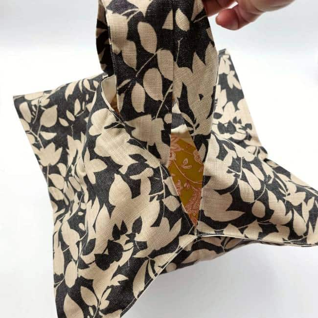 Un modèle simple, doublé de coton, avec des anses larges et souples pour une bonne prise en main. Sobre à l’image de mes autres produits tels les filets à fruits et légumes, les sacs à pain ou les tote-bag.